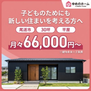 ゆめのホームでは、尾道市で叶える【30坪・平屋】の住まいを、建物本体+工事費を含めて「月々66,000円〜」という無理のない価格でご提案しております。